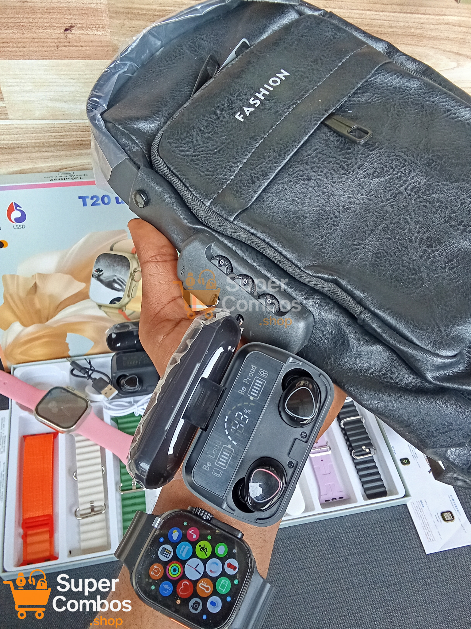 COMBO NAVIDEÑO🎁🎄: "Todo en uno: Reloj inteligente Ultra (4Manillas), Bolso Antirrobo y Audifonos M10 de Regalo.
